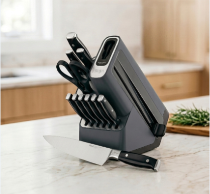 Ninja NeverDull 14-Pc Knife System: High-quality stainless steel blades with an integrated sharpener for consistent sharpness, easy slicing, and reliable professional results at home.
